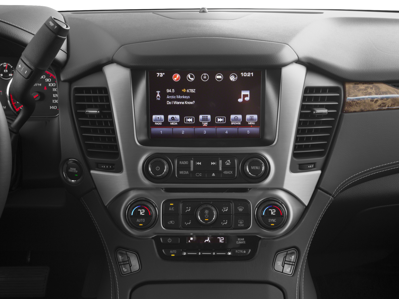 - Audio system, 8" Diagonal Color Touch Screen Navigation with IntelliLink includes new text message alerts and Siri Eyes Free functionality through voice command, AM/FM with USB ports, auxiliary jack, Bluetooth® streaming audio for music and most phones, hands-free smartphone integration, voice-activated technology for radio and phone and an articulating screen with hidden storage. Includes 5 USB ports and 1 auxiliary jack (See "gmtotalconnect.com" for phone compatibility information.)