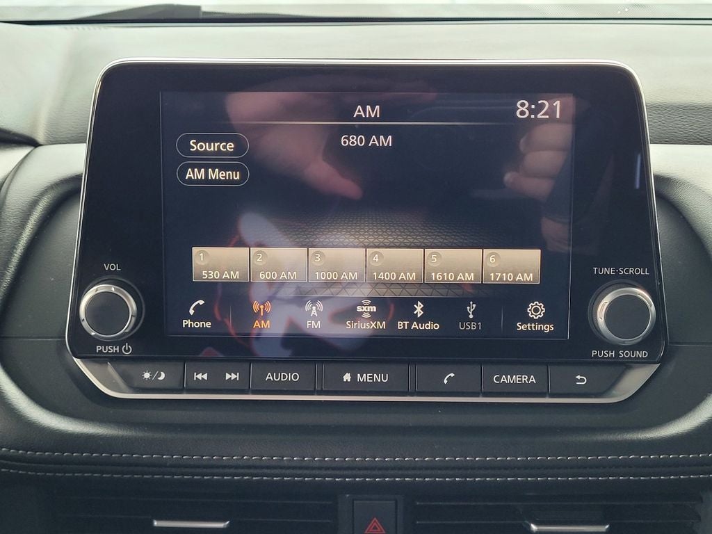 - Radio: AM/FM NissanConnect -inc: 6 speakers plus 2 tweeters, Apple CarPlay, Android Auto, 8" color touch screen display, Bluetooth®, 2 front USB type-C, Wi-Fi hotspot and NissanConnect Services powered by SiriusXM